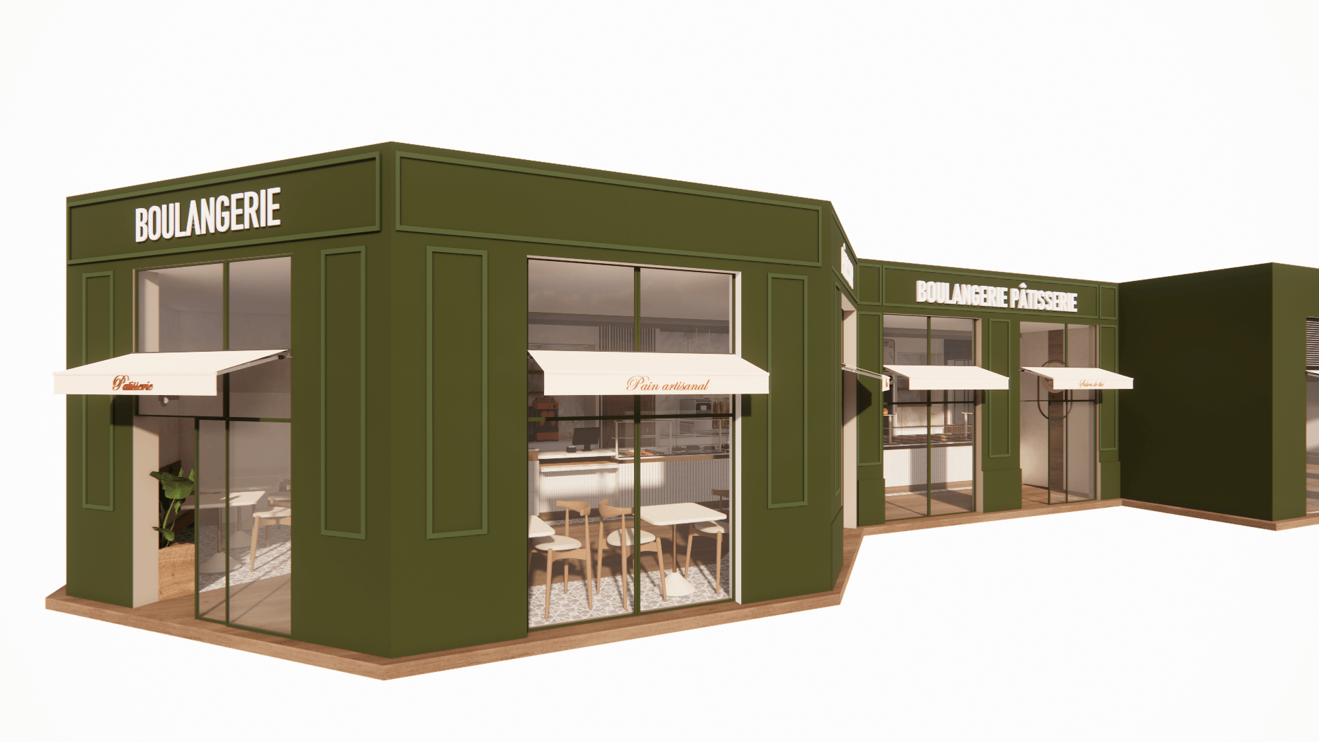 For this bakery project, I was responsible for the complete creation of the 3D model and the production of the visual renderings. My work involved translating the initial 2D concept into a realistic and immersive three-dimensional environment.