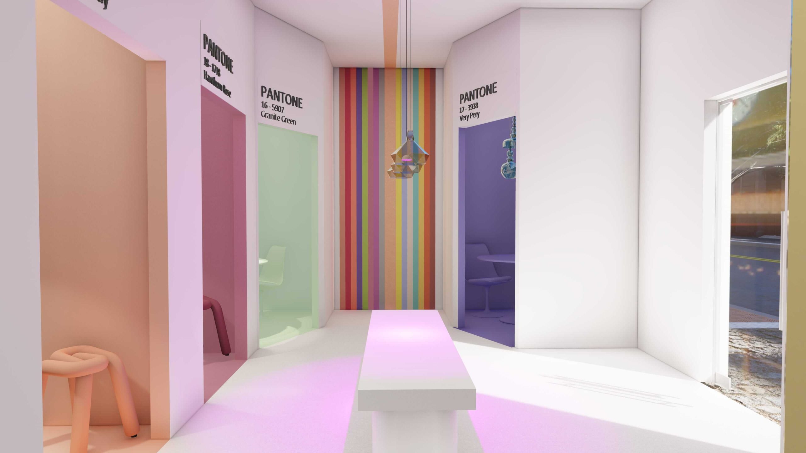 In our Pantone retail café, immerse yourself in a unique sensory experience where color reigns supreme. With the 2024 Color of the Year, Peach Fuzz, on one side, and booths showcasing different color palettes on the other, explore the impact of color on your emotions through your five senses.